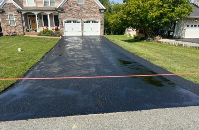 Sealcoat soaks into the asphalt, replenishing oils and binder that have broken down, filling small gaps in the aggregate, and restoring a deep, shiny, black appearance. It also forms a protective barrier against sun, water, oil, and salt.